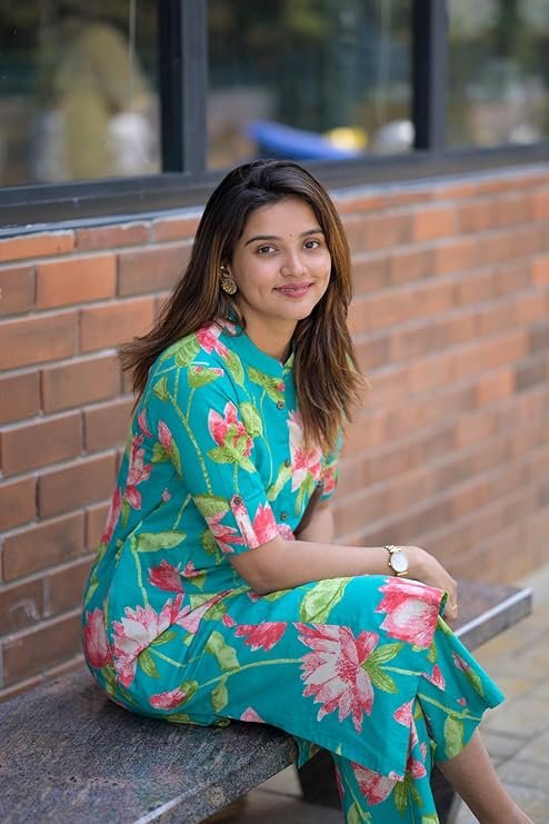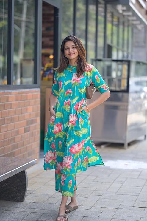 - This set includes: 1 Kurta and 1 Pant || Work :- Printed|| Neck Style:- High Neck