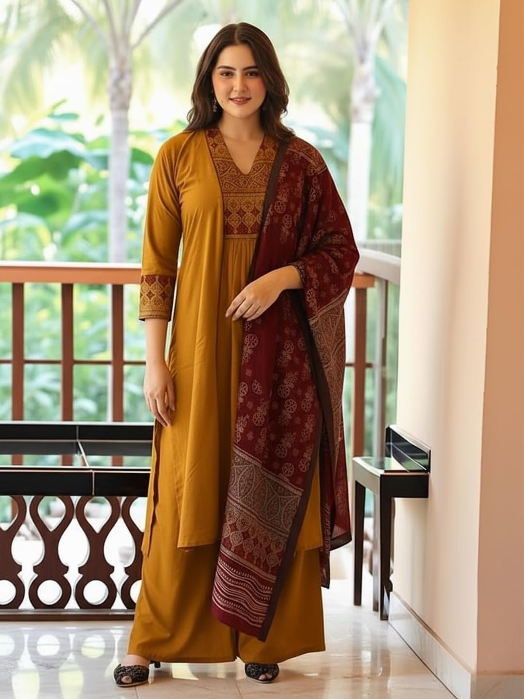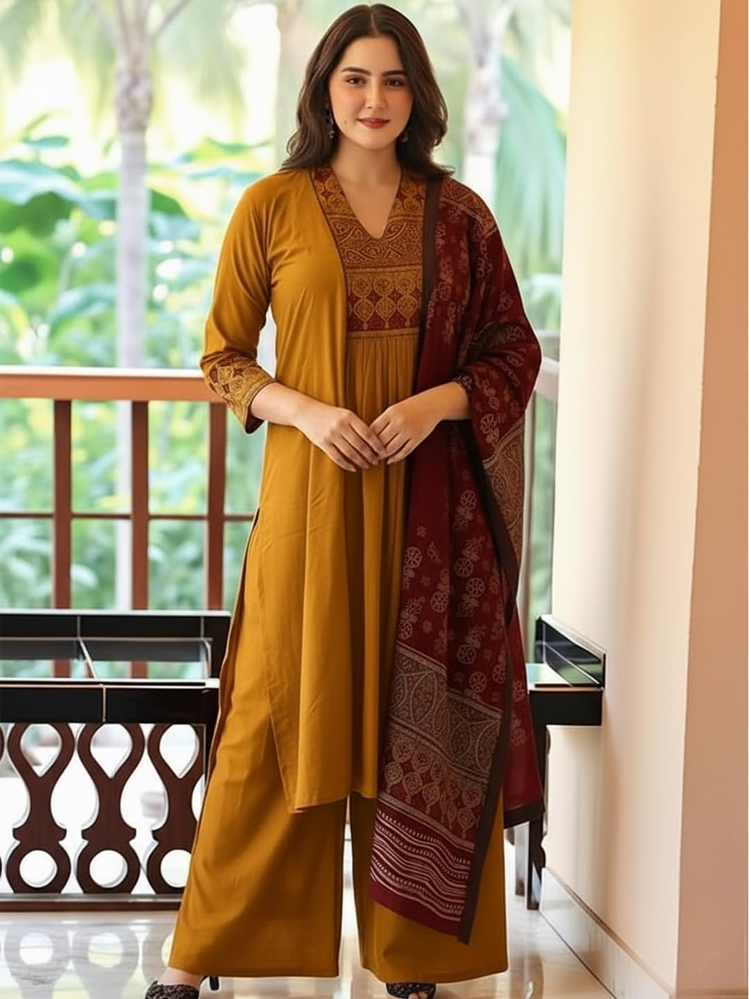 - This set includes 1 kurta, 1 pant with dupatta. || Work: – Straight || Neck Style: V-Neck || Care instructions: Dry Clean Only