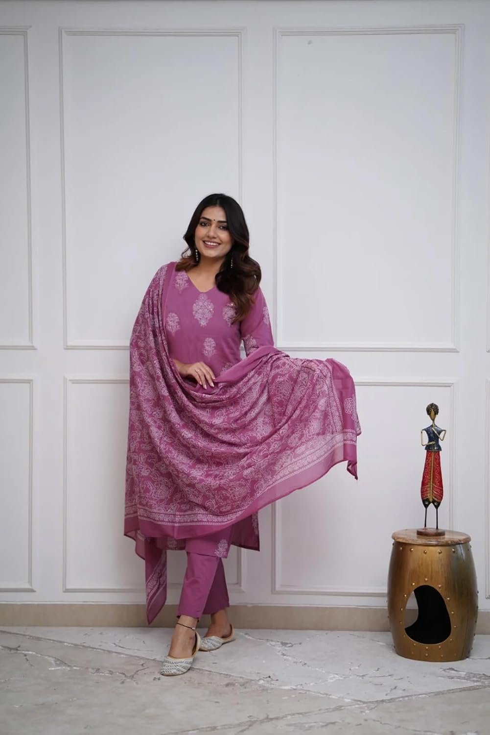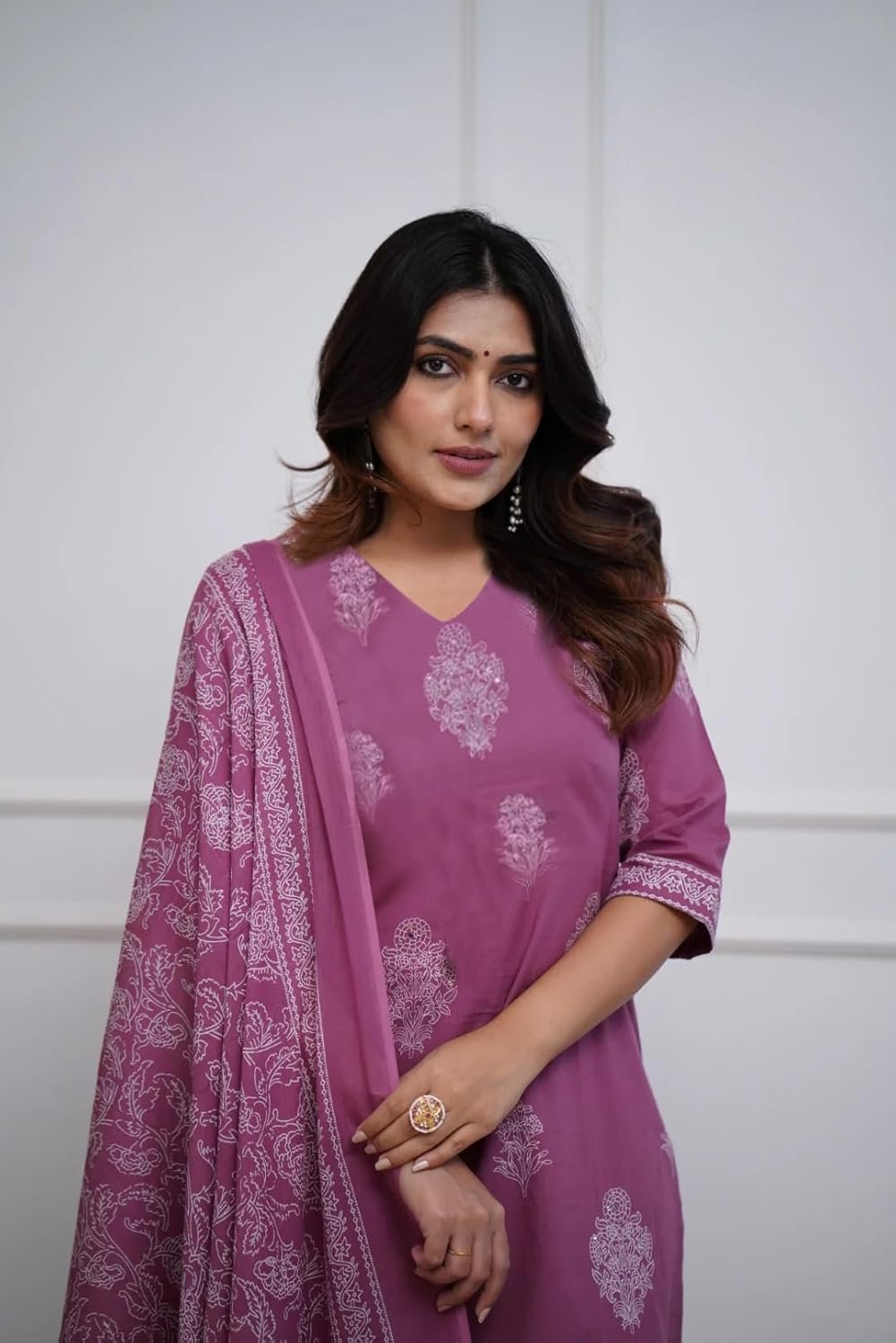 - This set includes 1 Kurta and 1 Pant with dupatta. Work: Printed || Neck Style: V-Neck ||Care instructions: Dry Clean Only