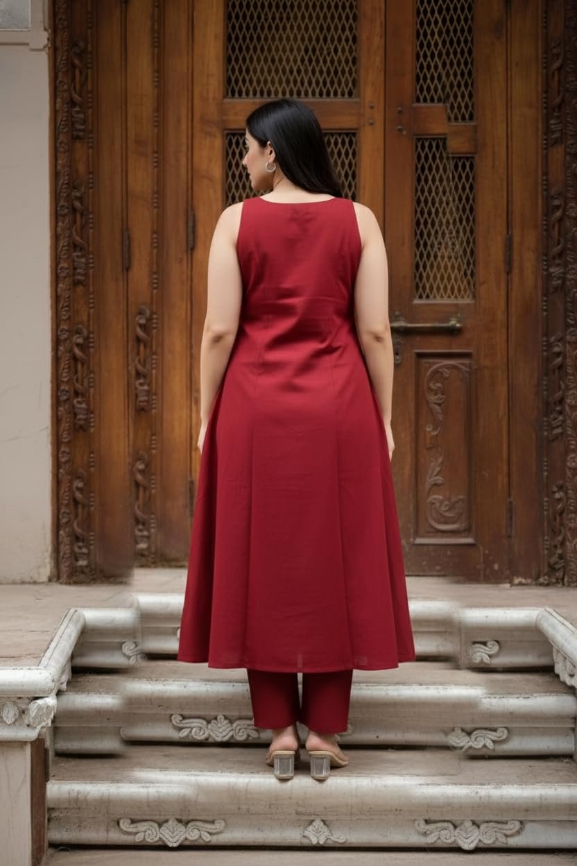 - Style: Anarkali || Length: Calf Length || Sleeves: No Sleeves || Size Chart—Kurta: S-36 in, M-38 in, L-40 in, XL-42 in, XXL-44 in, Pant: S-28 in, M-30 in, L-32 in, XL-34 in, XXL-36 in. For more, please refer to the size chart below.